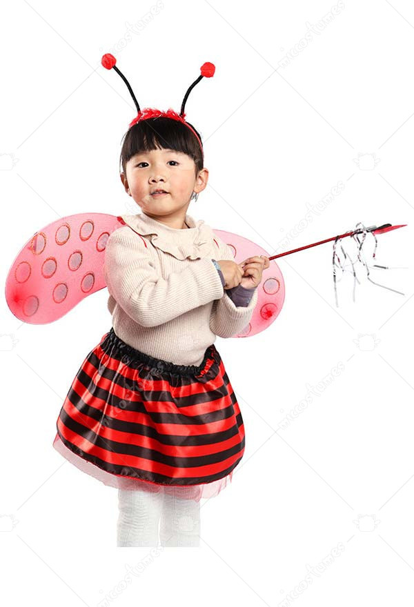 The costume includes skirt, wings, hair accessory and hand stick. It is made of gauze.