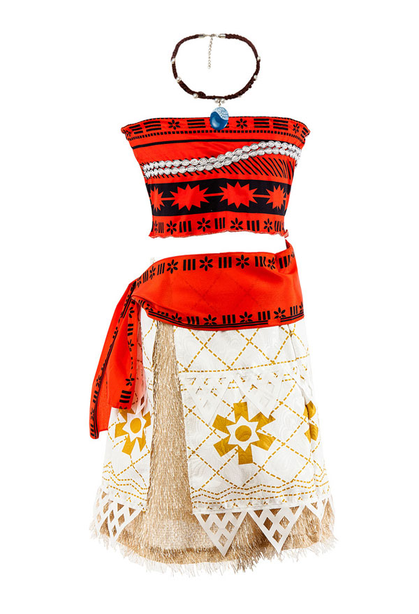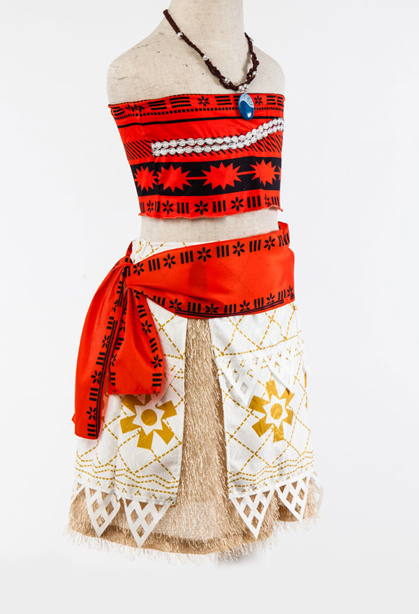 The costume includes top, skirt, necklace. It is made of polyester, cotton and gauze.