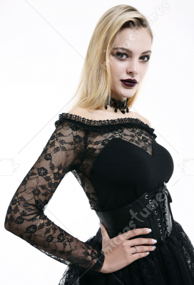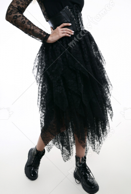 • Design Details: This design is also suitable for Halloween wearing. Ruffled collar and sheer lace are cute and sexy. Highlight of the outfit is the layered lace skirt with irregular hemline. Wearing with a corset, the whole set will be more attractive.
