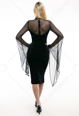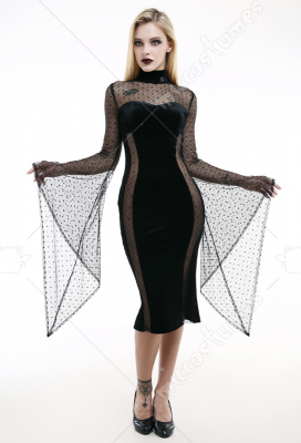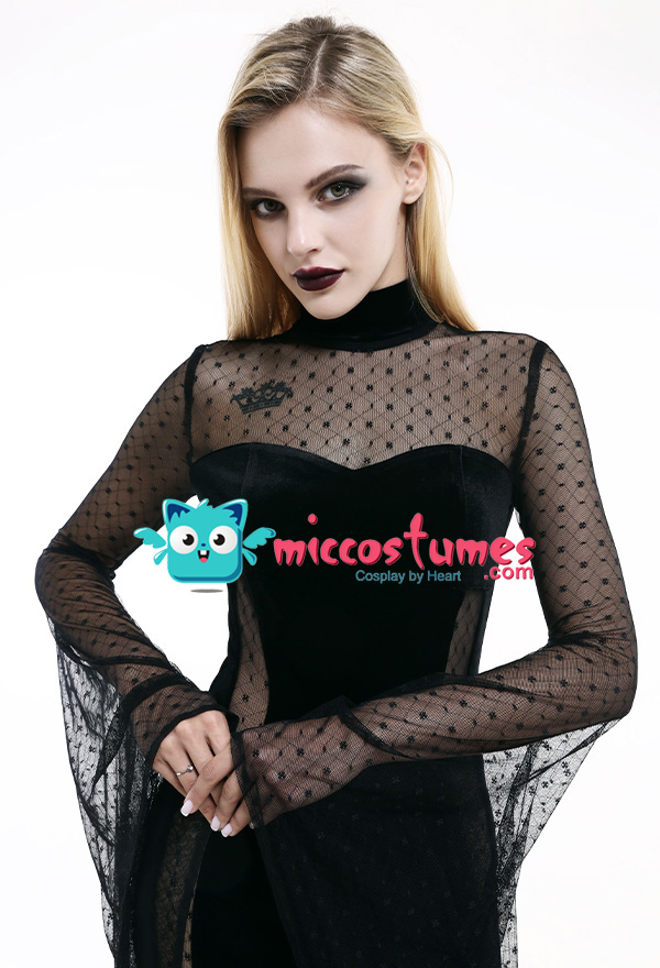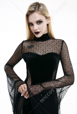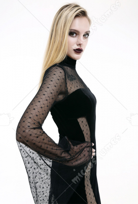 Costume Includes: dress. Material: lace,velvet. Design Details: The diamond pattern soft net spliced with velvet, with waist part semi-transparent design, both elegant and sexy.