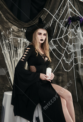 Costume Includes: dress. Material: spandex. Design Details: The dress is designed as slim style, and the waist part is spliced with soft mesh lace, which can be good modification. The collar is decorated with big pentagon, and the sleeves are designed as bow hole pattern. Both the sleeve outside and hem dereviates from bat. .jpg)
