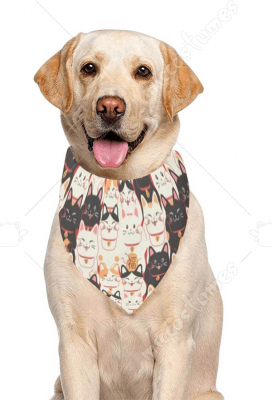 Accessory includes: pet scarf. Material: polyester, spandex. Design Details: Double-sided printing, moderate softness of the fabric, no elasticity, comfortable and breathable, stylis. Personalized decoration when going out, easy to eat and drink at home, no need to worry about pets getting dirty.