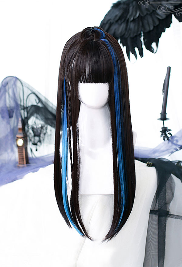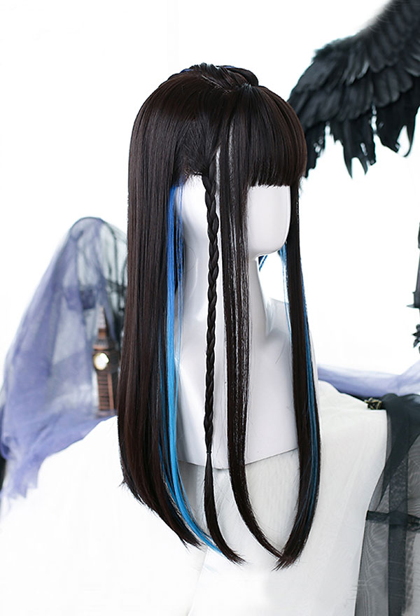 Be the first to review “Halloween Lolita Devil Witch Ear Dyeing Blue and Black Mixed Color Straight Long Daily Wig with Bangs”