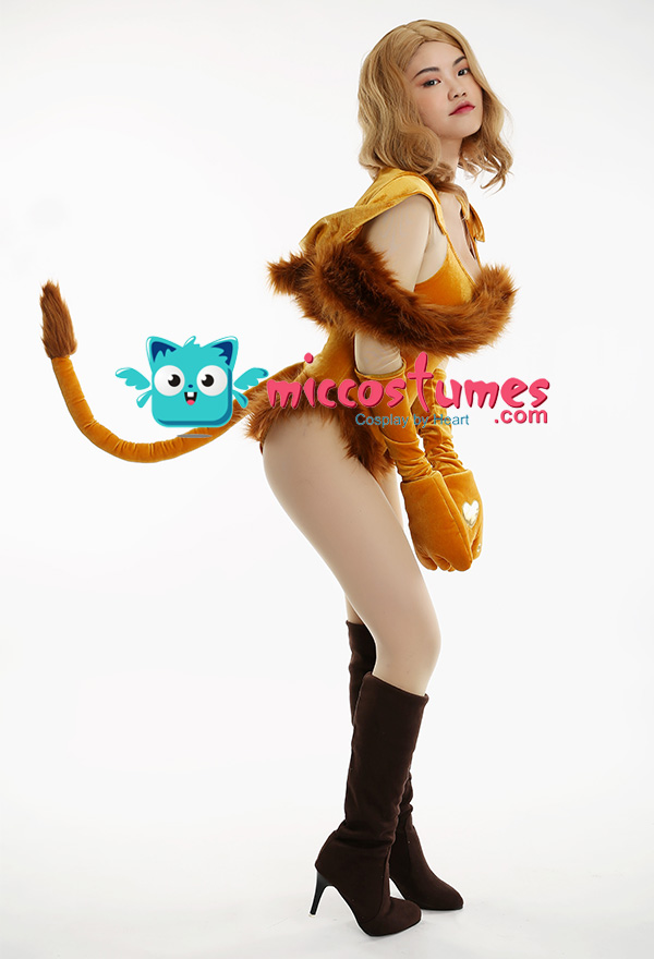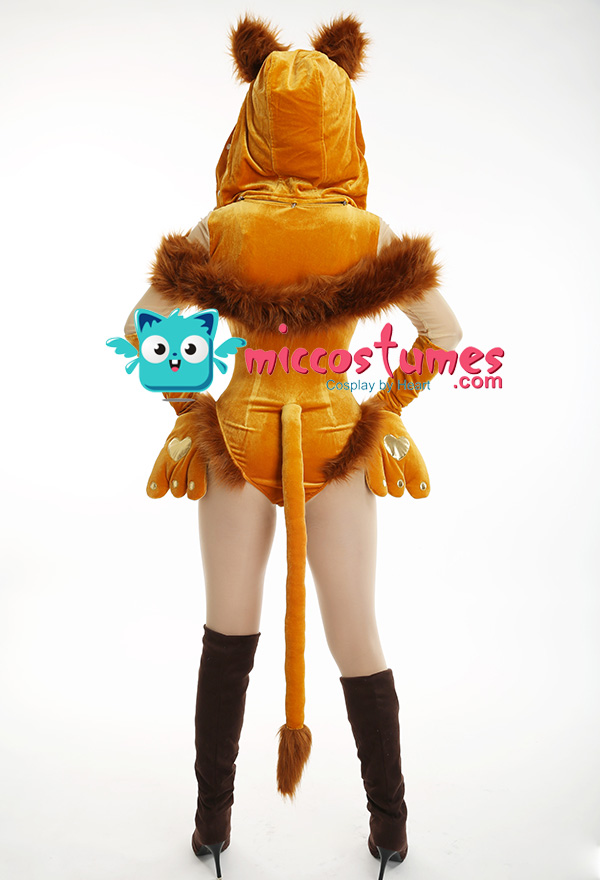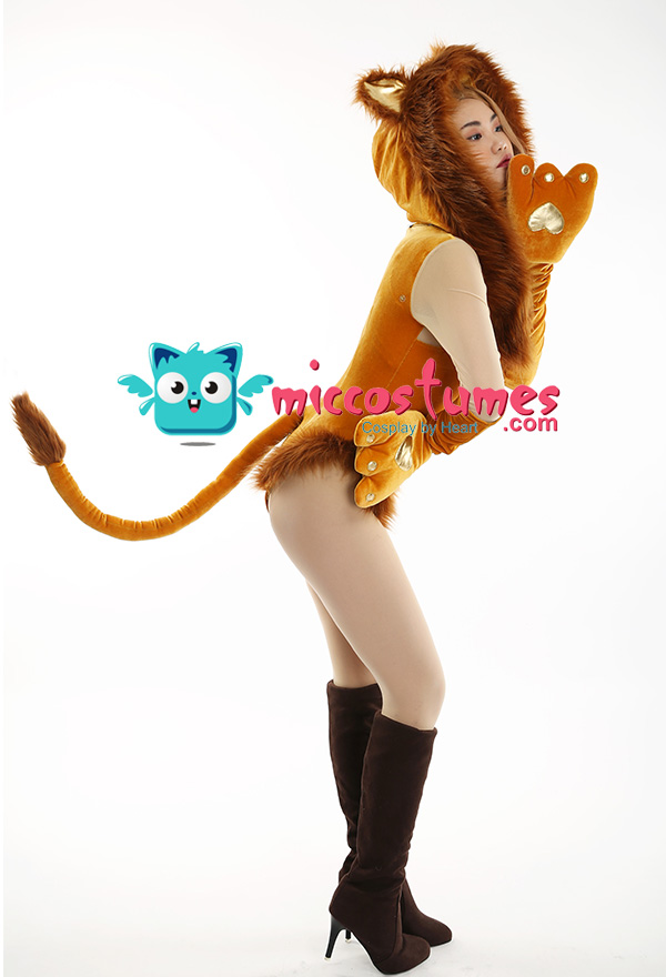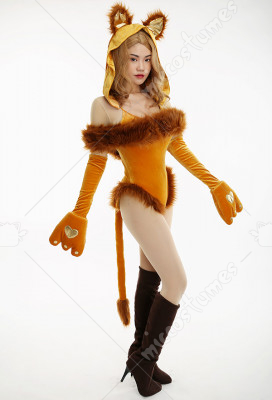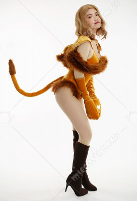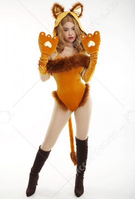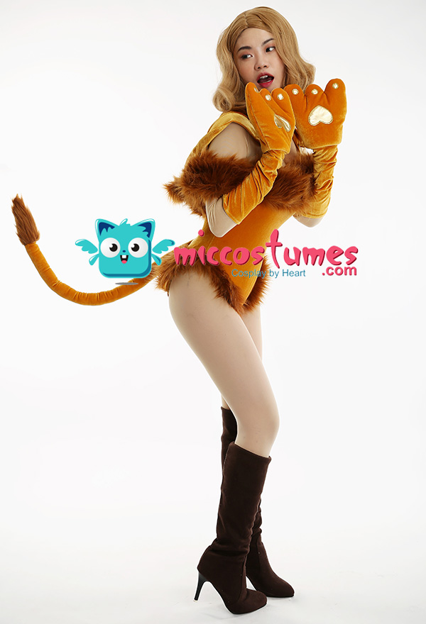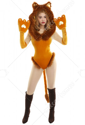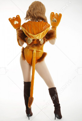 The costume includes bodysuit, hat, glove*2, faux fur collar. It is made of imitation fur, velour, aluminium wire.