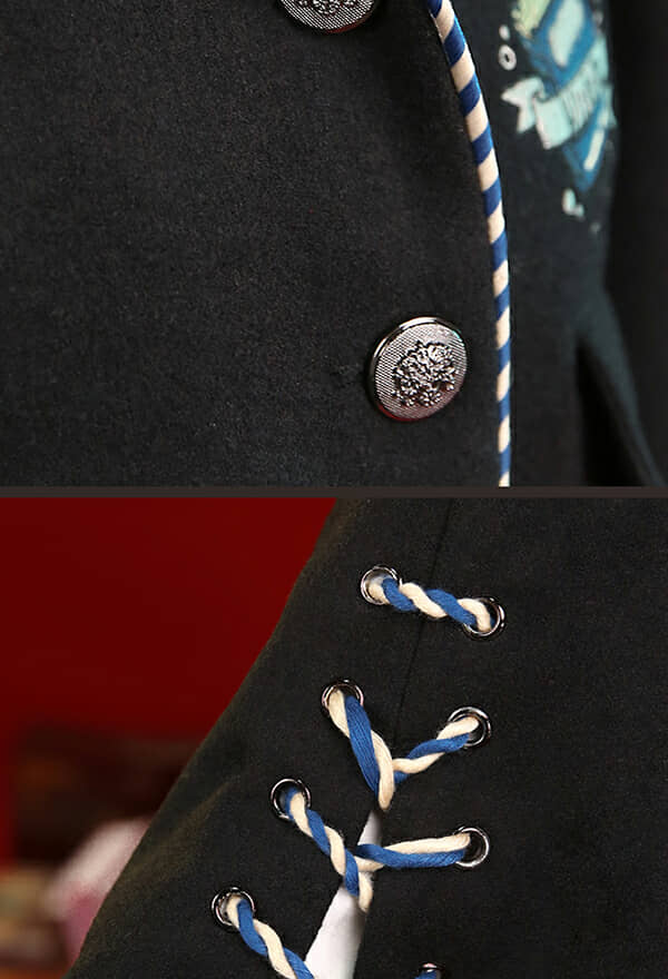 | Material | The coat is made of wool and satin silk. The Pants are made of twill cotton.The skirt is made of twill cotton |
