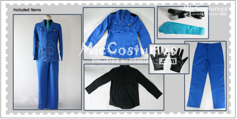 | Included Items | Jacket, shirt, trousers, tie, belt, gloves |