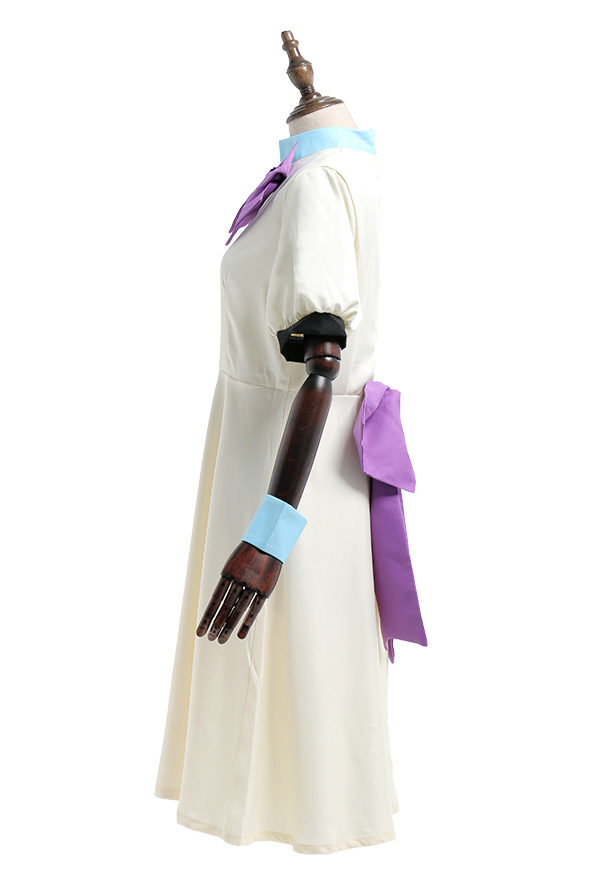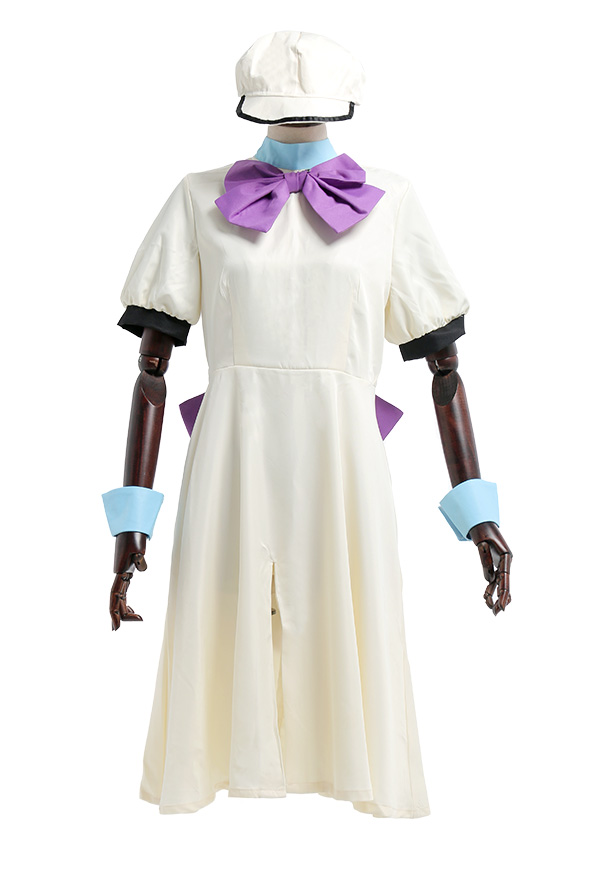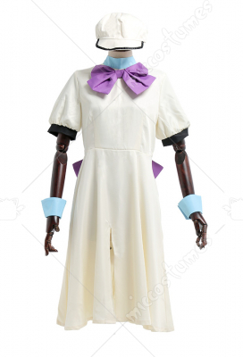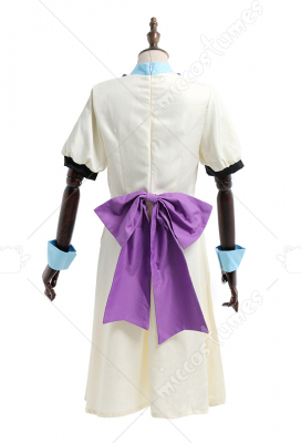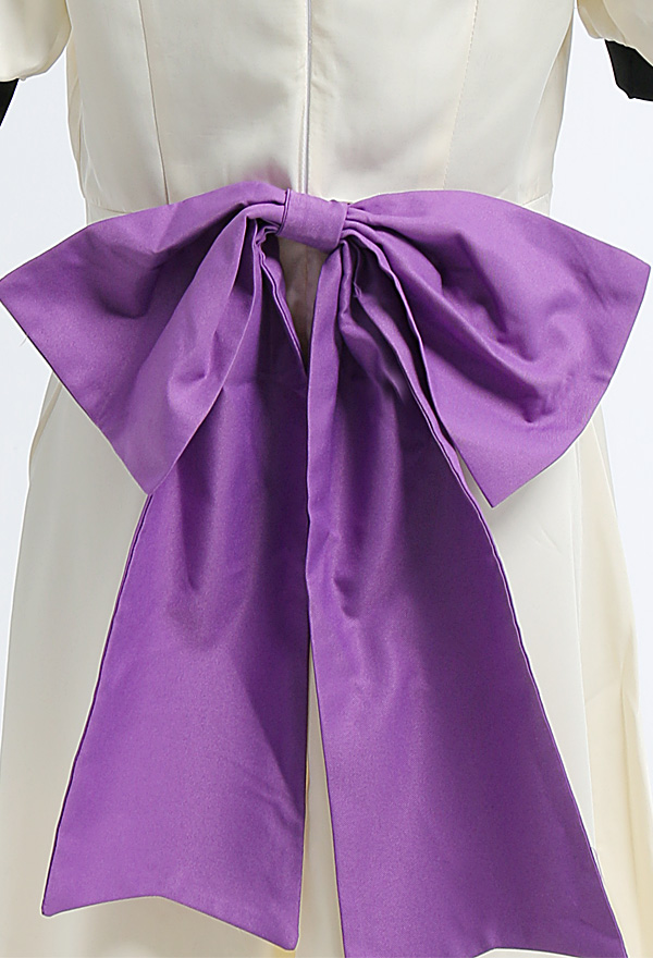 Costume Includes: dress, large bow, small bow, wrist support*2, stockings*2, hat. Material: polyester, mixture yarn. Design Details: The back and collar are beautifully decorated with bow. Cuff is a bubble sleeve design.