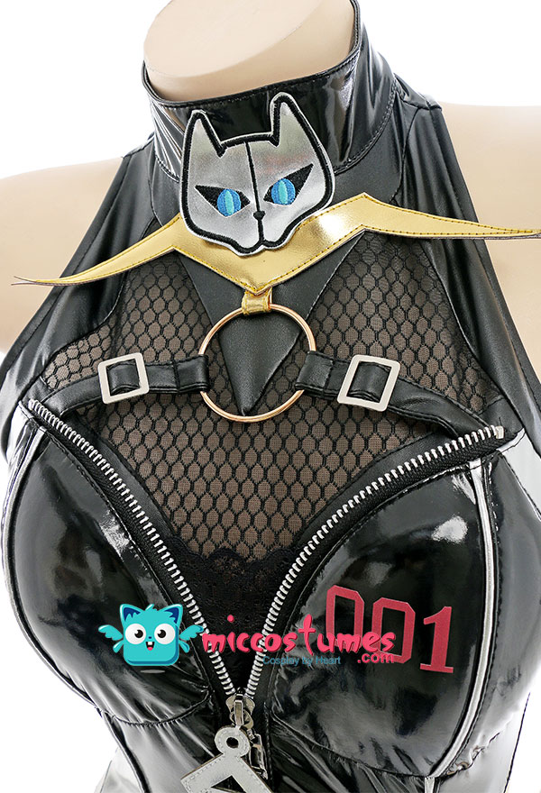 Design Details: This bodysuit is made of stretch pu leather. The cute cat embroidery on the chest is adorable.