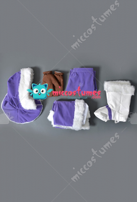 The costume includes hooded cape, coat, pants, shoes cover*2, glove*2. It is made of spandex, PU leather, suede fabric, fur imitation, faux lambswool fabric, velveteen.