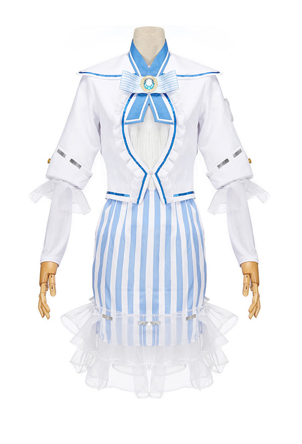 The costume includes coat, bottoming shirt, bow tie, skirt, socks, gloves*2, hat, glasses, silver gun. It is made of soft wool fabric, knitted fabric, seersucker fabric.