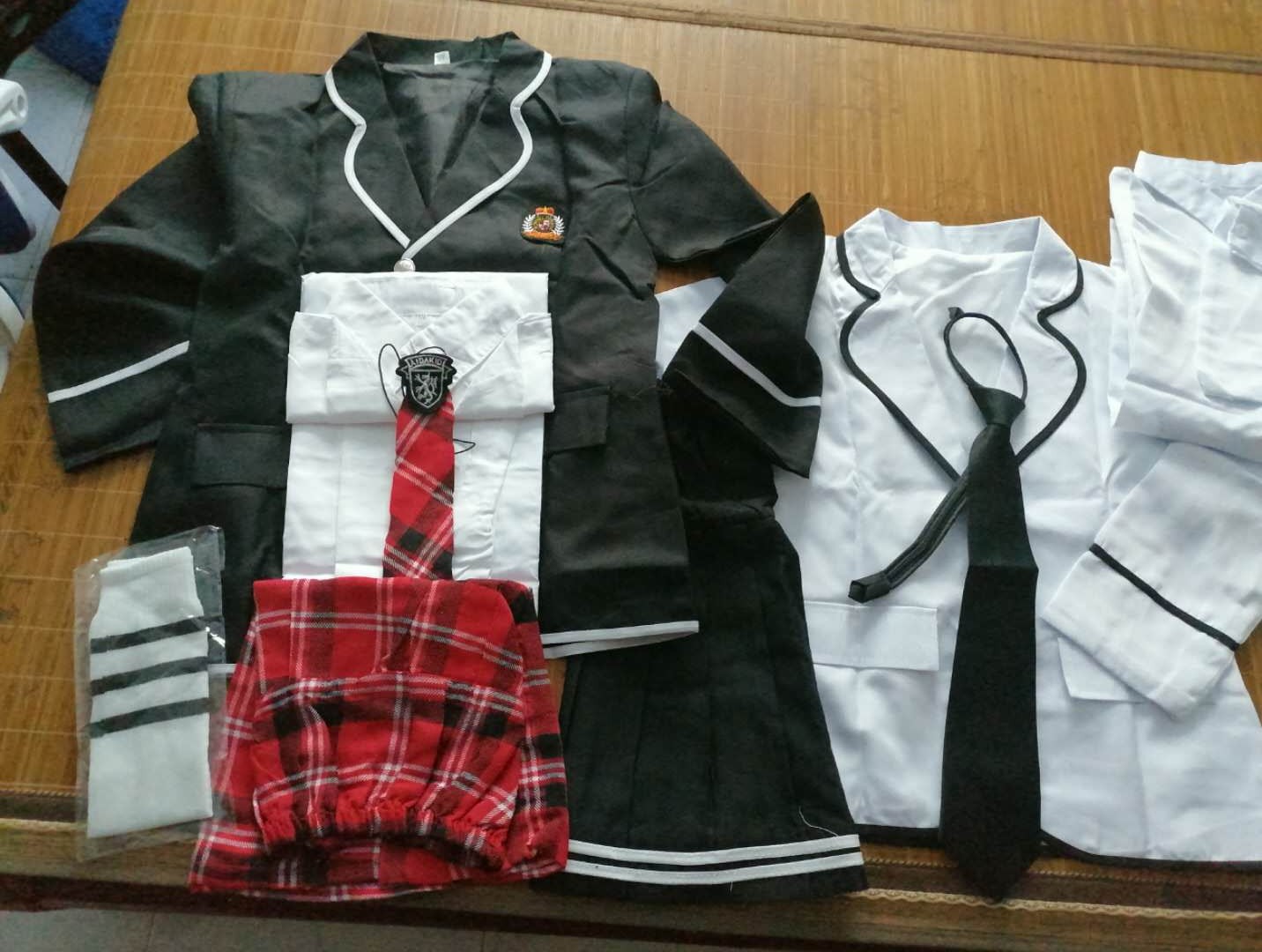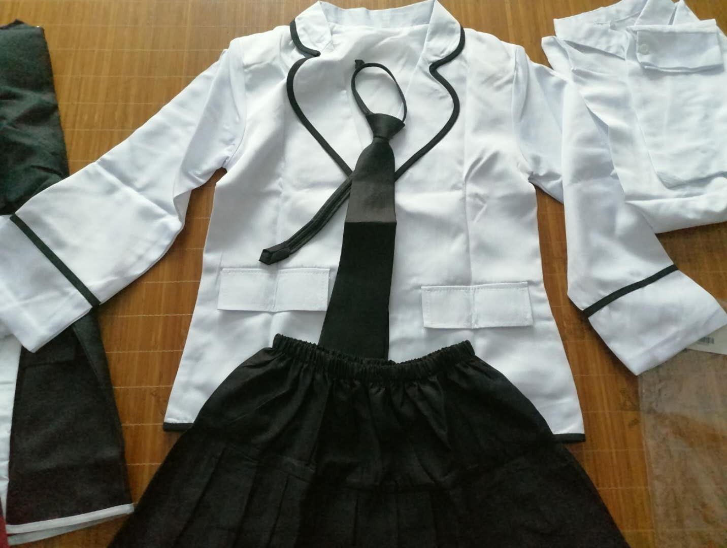 Female suit = coat + white shirt + short skirt + tie + micro chapter