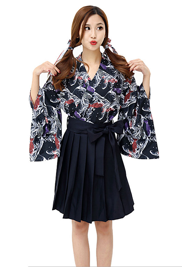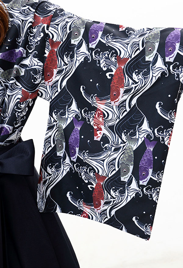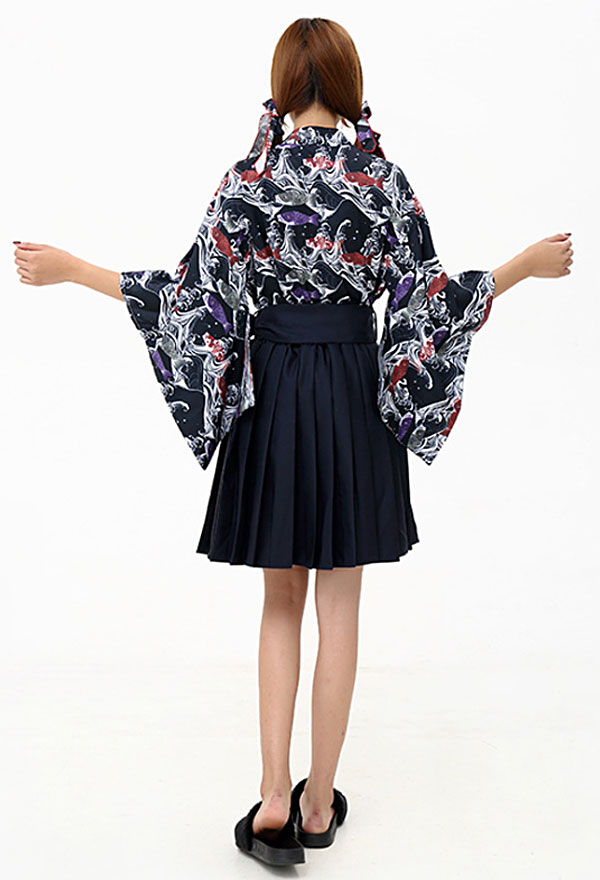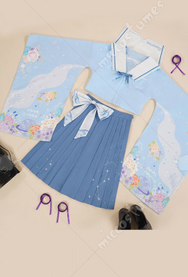 The costume includes haori, skirt, hair rope. It is made of bamboo fabric, cotton.