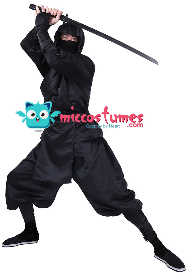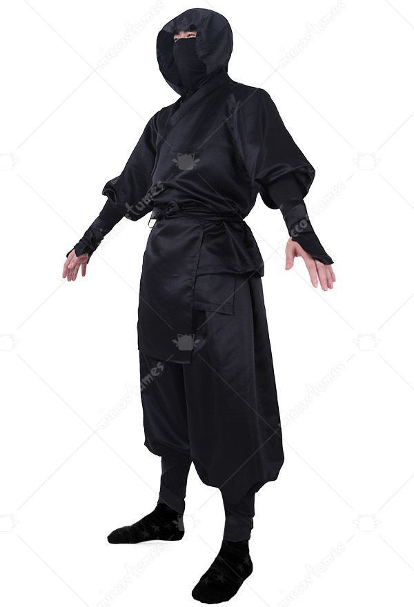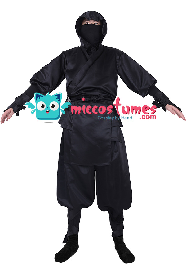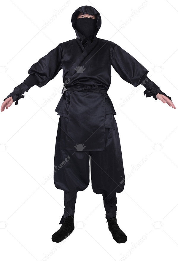 This costume includes the upper garment, pants, apron×1, hood with the mask, two separate sleeve bandages. It is made of satin.
