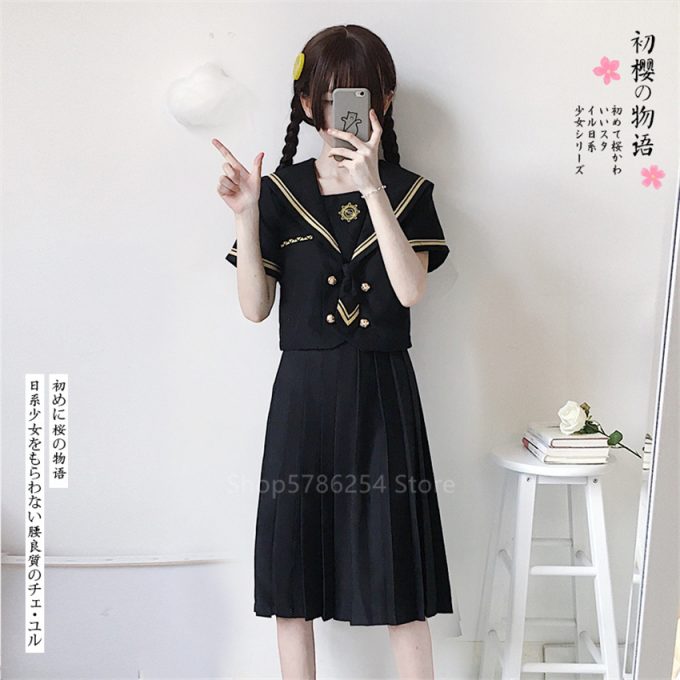 100% brand new and high quality Fabric: TR polyester Applicable occasions: school uniform / daily wear clothes / anime uniforms School uniform style: sailor suit Style: Short sleeve suit, Long sleeve suit Size: XS/S / M / L / XL/2XL Products include: See Options