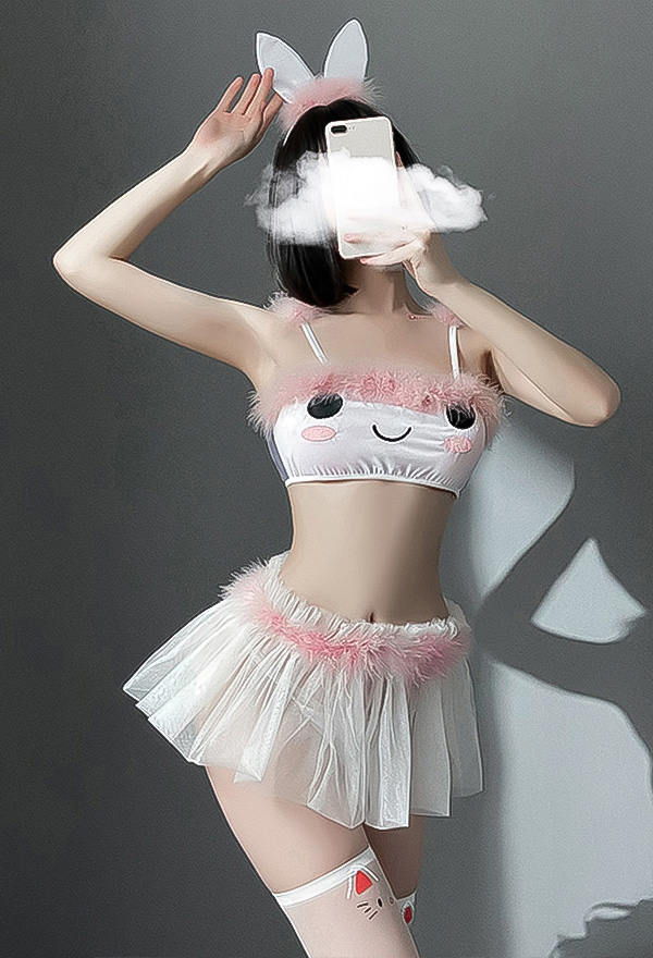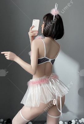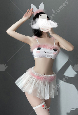 Costume Includes:headdress,top,skirt,thong,stockings,Material:polyester,net yarn,leather