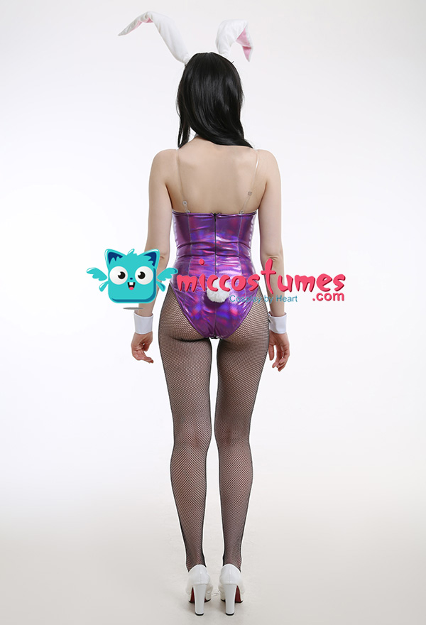 Costume Includes: hair band, bodysuit, tail, collar, bow tie, hand sleeves*2, net stockings, transparent should strap. Material: spandex, bright silk cotton, artificial fur. Design Details: The chest side is with anti-slip straps, and the crotch side designed can be convenient for wearing.