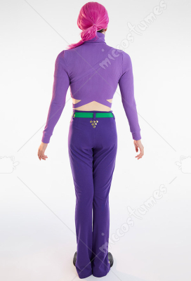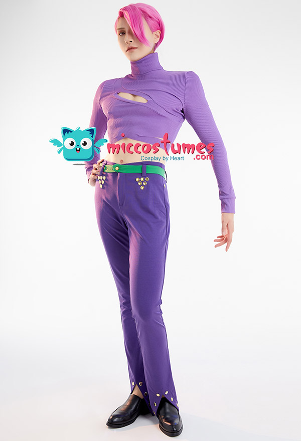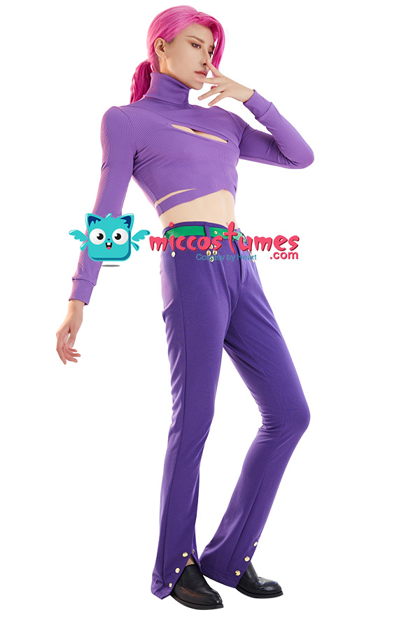 Design Details: The top is made of stretch knitted fabric, and the trousers are also stretch fabric and decorated with metal snap buttons.
