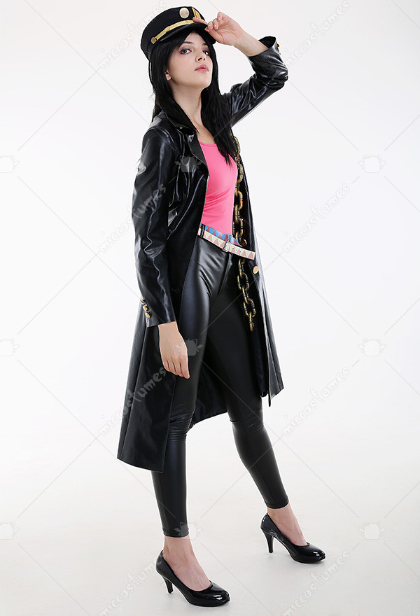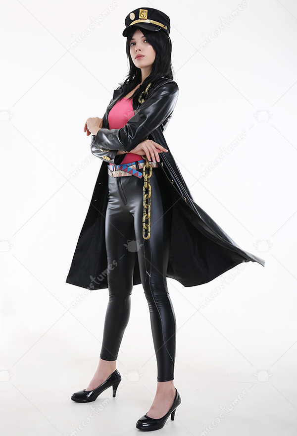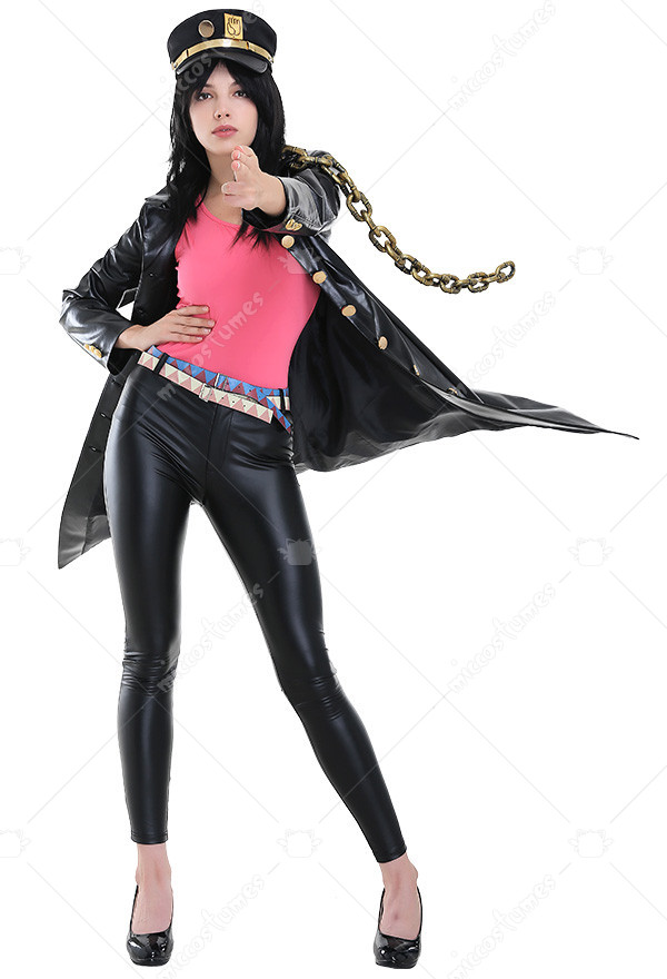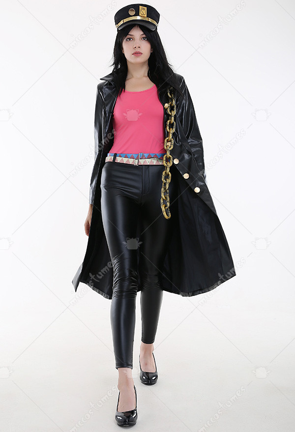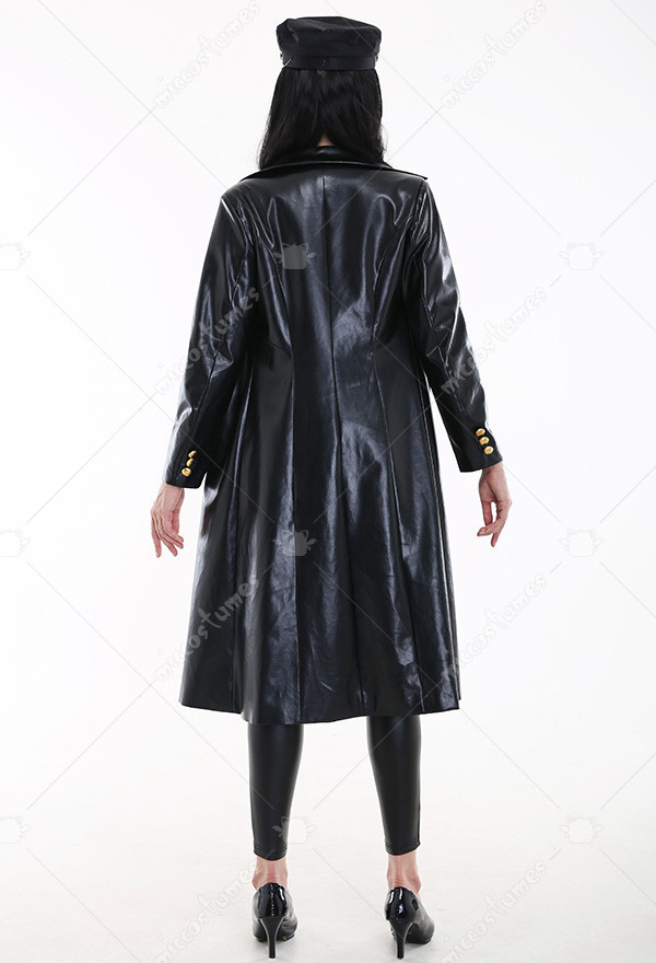 The costume includes coat, vest, pants, belt*2, chain*1. It is made of PU leather, milk silk fabric.