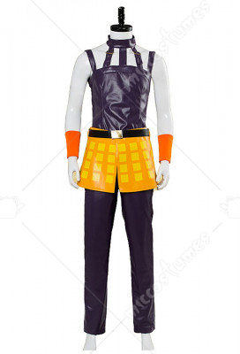 The costume includes top, pants, belt, leg warmers and hat. It is made of spandex, garment leather and breathable fabric.