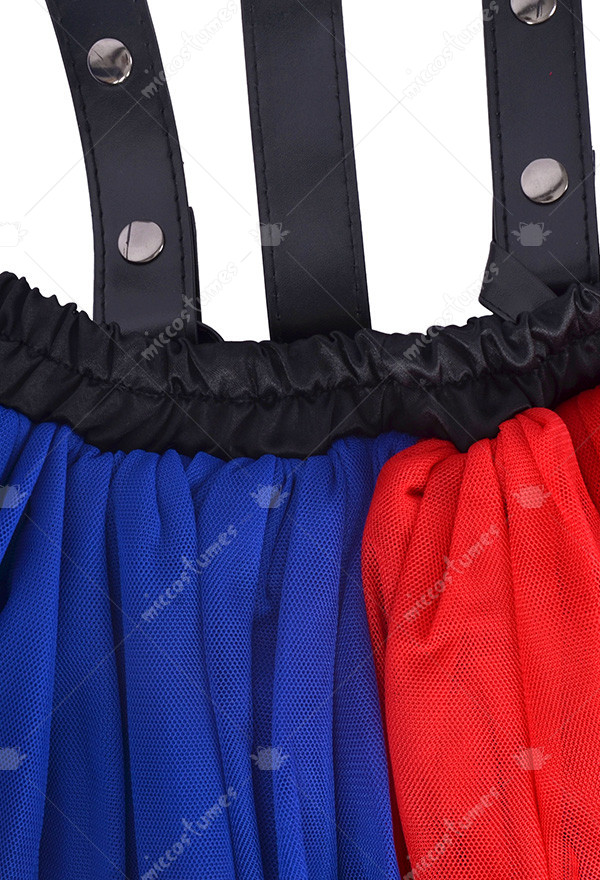 The costume includes suspender skirt only. It is made of PU leather and chemical fiber.