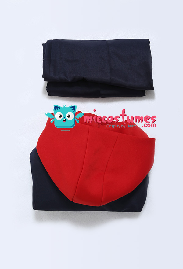 Costume Includes: uniform jacket, pants. Material: polyester, cotton. Design Details: The costume is designed as H pattern and is made of comfortable polyester. The uniform jacket is with lining cloth and shoulder pads inside, and is decorated with delicate metal buttons. The zipper is at the front middle part and the waist parts is with hidden buttons inside.Besides, the hoodie hat and uniform jacket is connected, which is a fake-two design on version. The pants is designed as waist-adjustable form.
