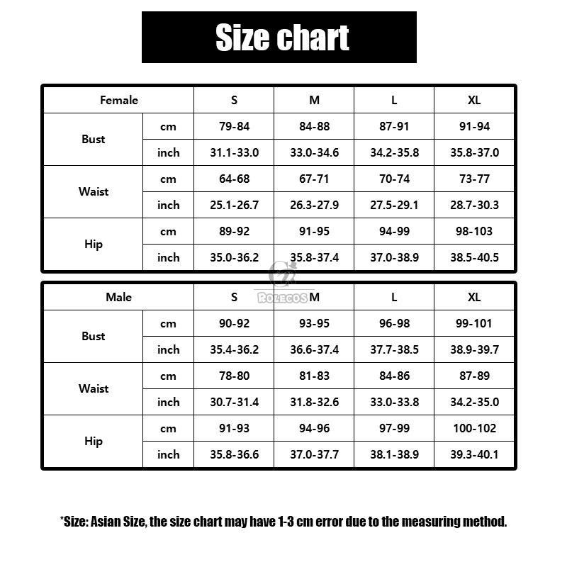 | Include | Costume + Tattoo stickers +$8.00, Female, L, M, Male, Only Costume, S, XL Size Chart <div class="group-item |