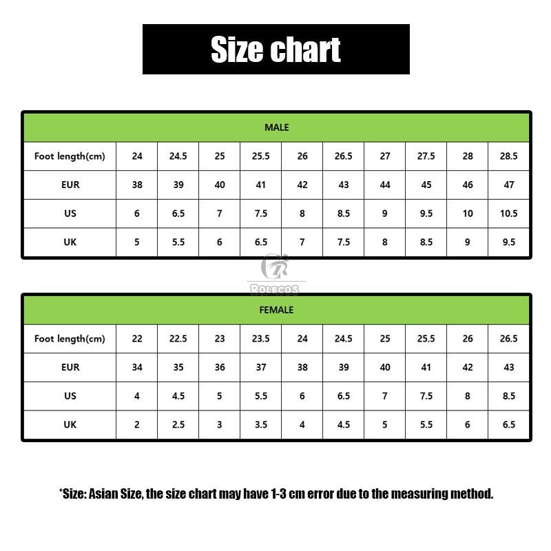 Features: This shoes are based on the hot Anime Jujutsu Kaisen. With high quality material and excellent tailor skills, you will wear it comfortablely in any situation.