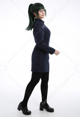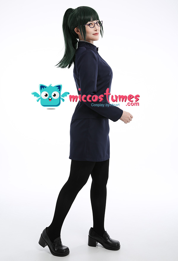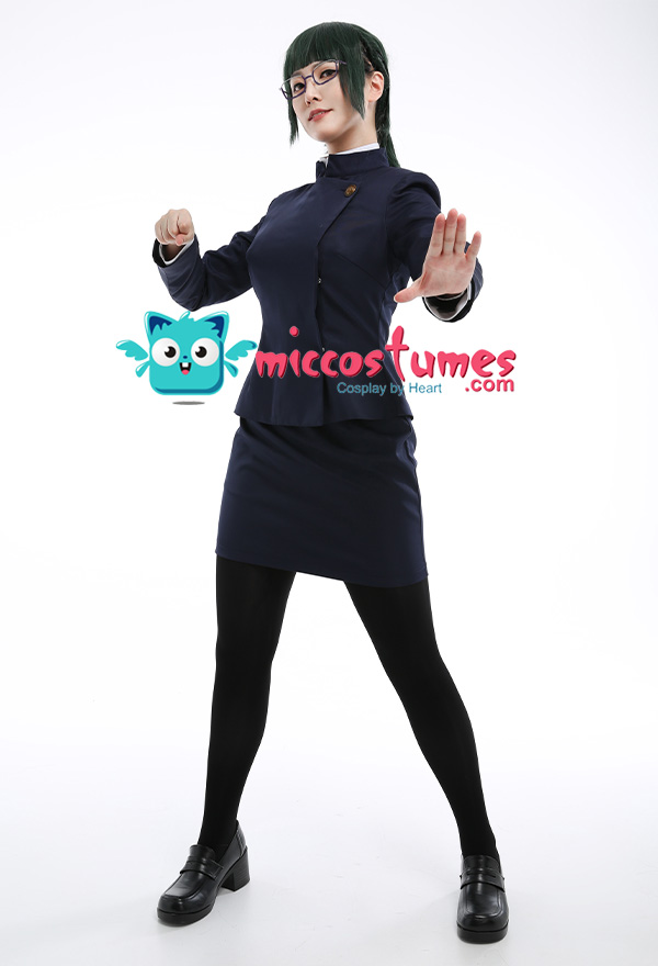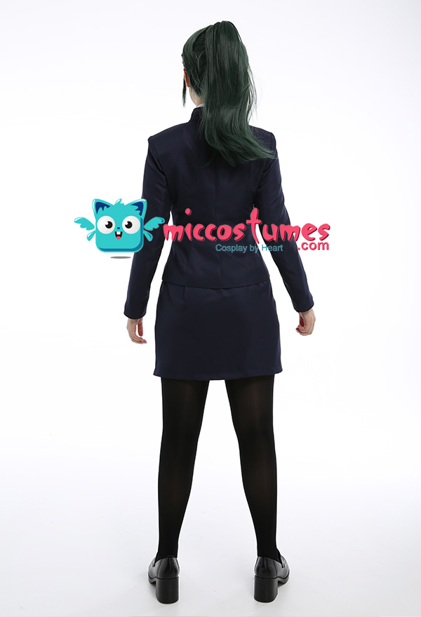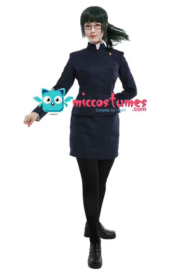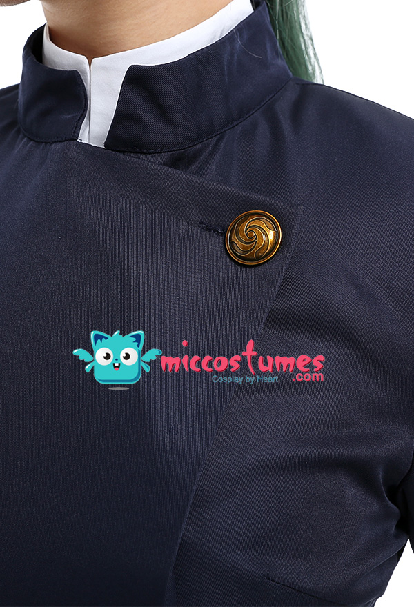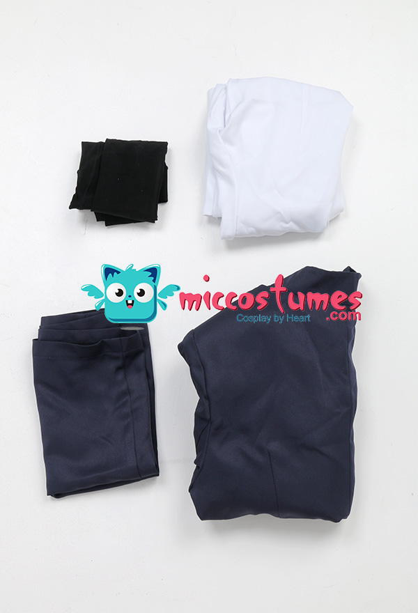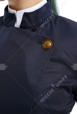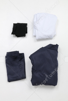 Costume Includes: coat, skirt, shirt, stockings. Material: lining, shirt fabric, uniform cloth. Design Details: This outfit is made of uniform cloth. The coat is padded in the shoulders to make it more crisp. The middle front of the coat has a zipper and a hidden button. The metal buttons adopts specially customized pattern buttons to achieve the effect of restore the character.