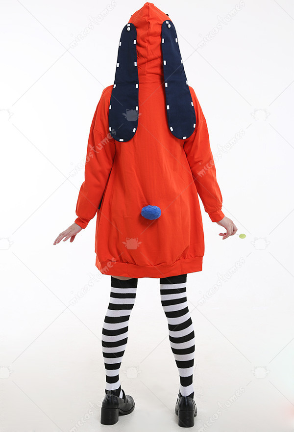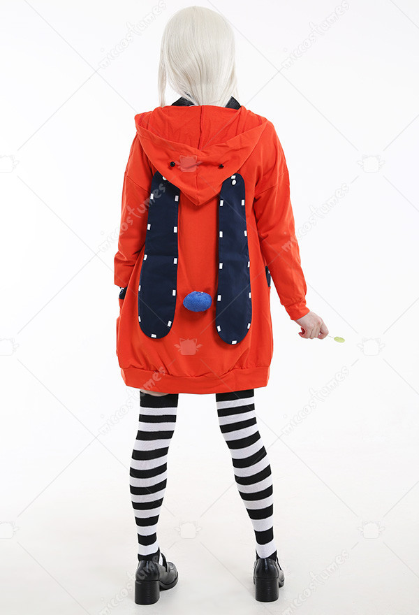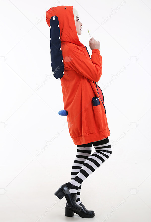 This costume includes hoodie coat, ears, tail. It is made of thickiy ronior. The ear of the coat is detachable.