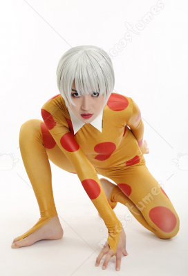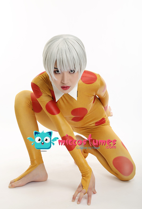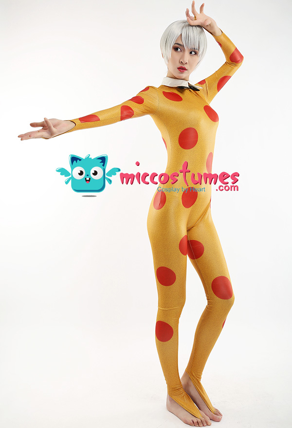 The bodysuit is made of spandex, PU leather, Fil-Lumiere cotton fabric.