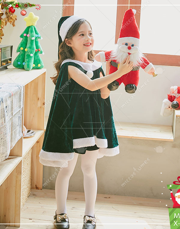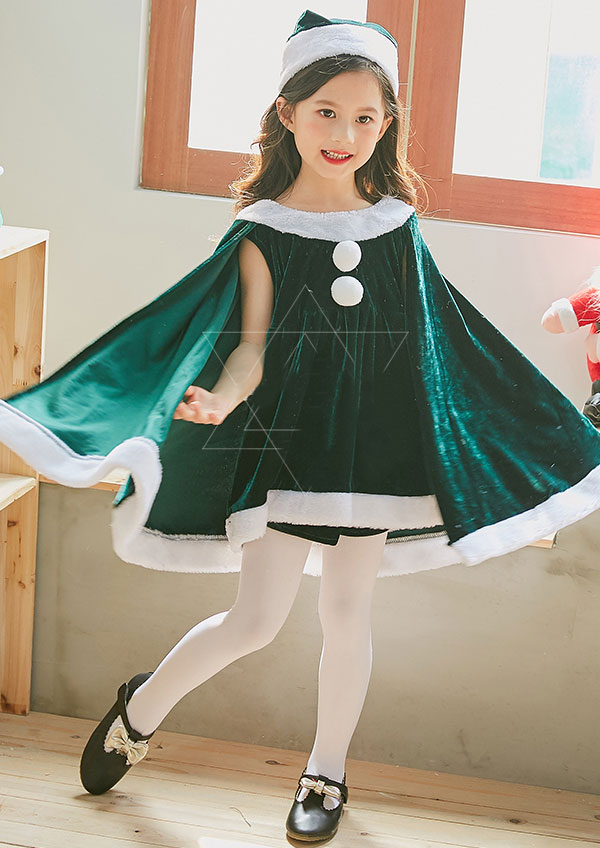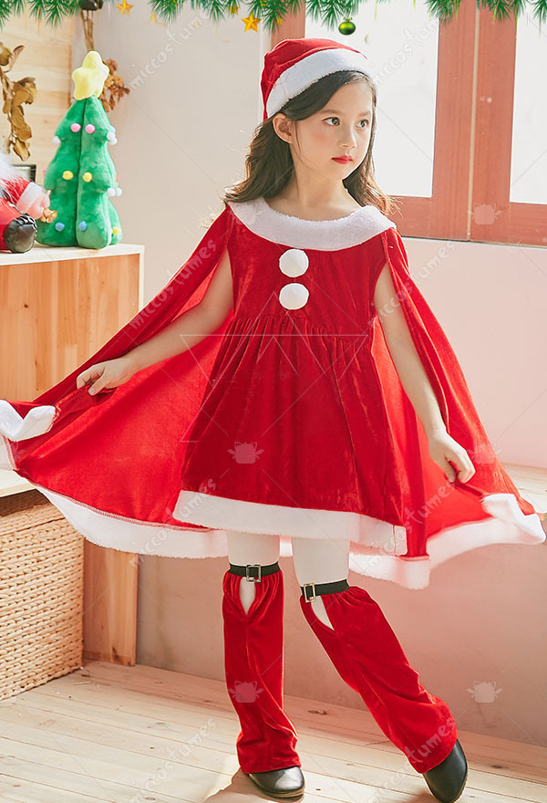 Kids Christmas Party Costumes Girls Santa Clothes Cosplay One Piece Dress with Cloak