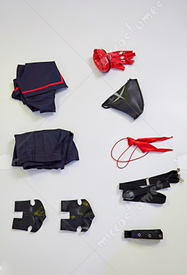| Included Items | skirt, top, bra, collar scarf, belt, straps, waist accessory, glove |