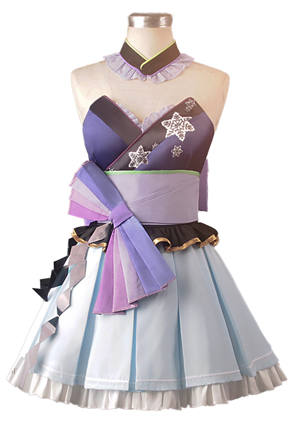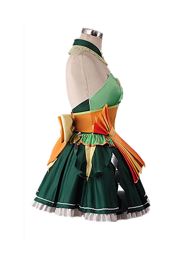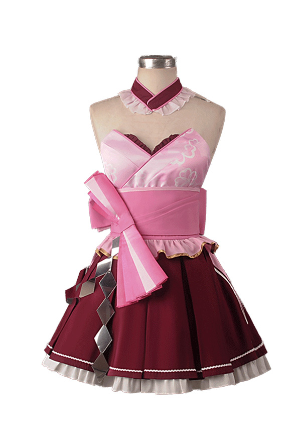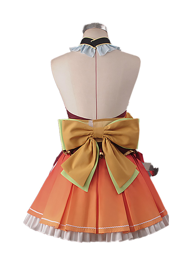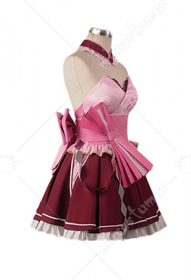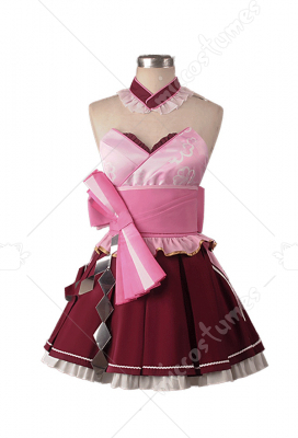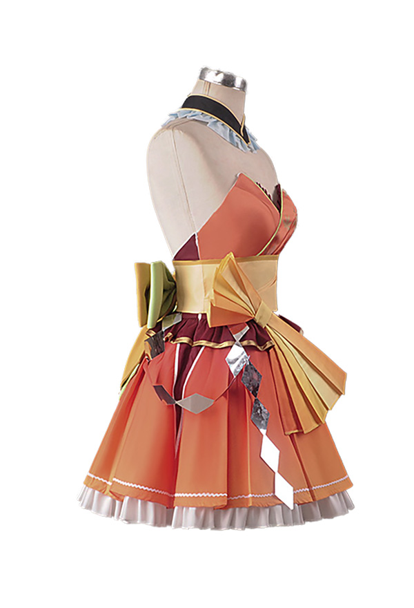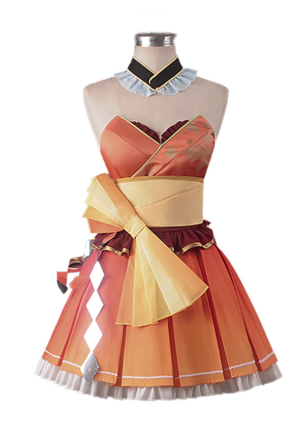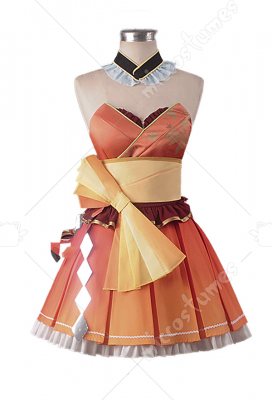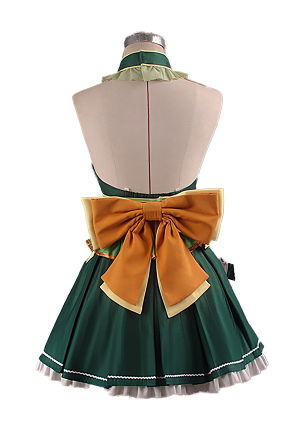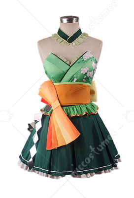 The costume includes dress, bowkont decoration, choker, briefs, hairclip. It is made of satin and khaki.