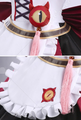The costume includes dress, back bow, bow support, waist accessory, neck accessory, garter, sleeve*2, wrist accessory*2, head accessory, glasses. It is made of flash brocade cotton fabric.