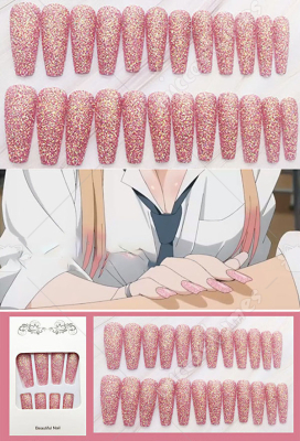 Note: Only fake nails included. No tools or glue. It is normal for the powder to fall off slightly because it contains sequins. Applying a layer of transparent nail polish will be good.