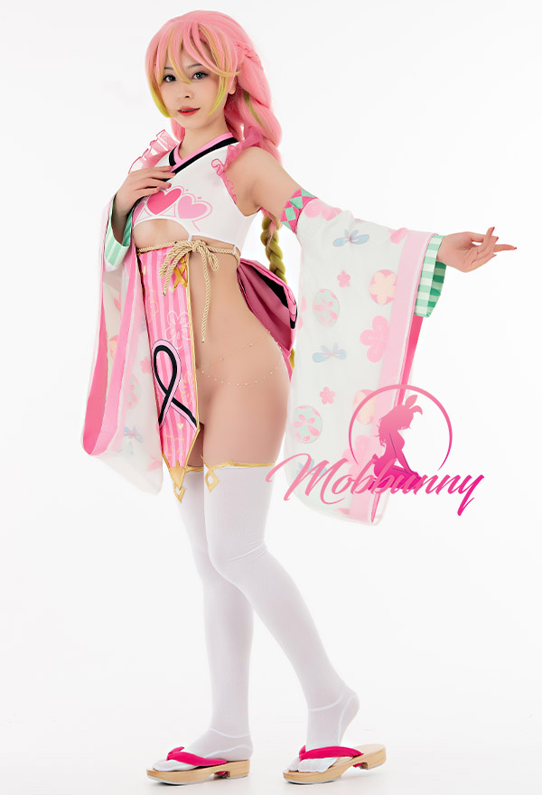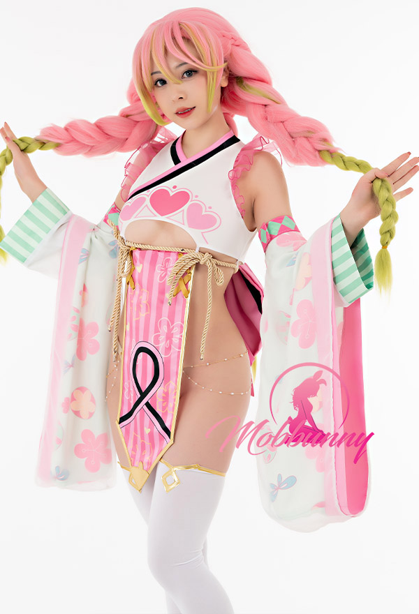 Design Details: Kimono style dress comes with ultra stretchy top which fits most sizes. Detachable front and back piece matched with sexy thong, this lingerie costume perfectly shows Mitsuri Kanroji's beauty. Note: For product accessories, please refer to the details chart. Other accessories in the photo belong to our collaborating models. Credit: samichuuu