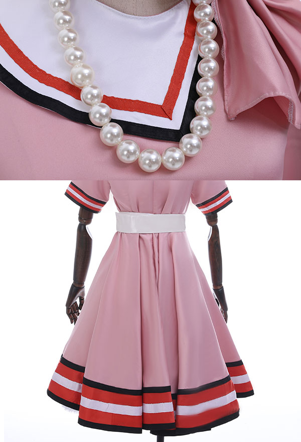 This costume includes dress, belt, necklace, hat and bow decoration. It's made of satin.