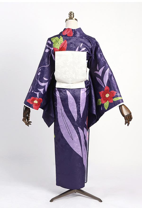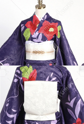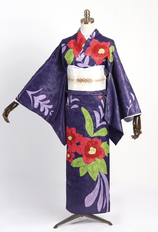 The costume includes kimono, obi, waist accessory. It is made of jacquard fabric.