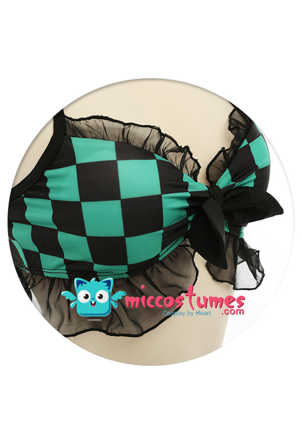 Cosume Includes: top, shorts. Material: chiffon. Design Details: The chiffon ruffles endow the whole outfit with agility and cuteness. The grid pattern restores Tanjiro’s outfit in the anime, and with the decoration of a bow, it looks very cute. The halter design provides convenience for adjustment. Attention: The swimming suits belong to underwear, so please wear shorts when you try on, otherwise the swimming suits can’t be returned or exchanged if the question appears. All the swimming suits are with Protective Hygienic/Hygienic Panty Swimwear Liner, and the swimming suits can’t be returned or exchanged if ripped the liner. Wash Care Instructions: Not machine washable Do not iron Do not bleach Hang to dry No dry cleaning No dryer Washing precautions: 1.The swimsuit can only be washed in warm water, not soaked and washed in high temperature water. 2. Do not use detergent, soap, disinfectant, or other chemical cleaners to wash swimsuits. 3. There may be chemicals or seawater in the pool which could cause the swimsuit to fade or deform. Please wash your swimsuit immediately after use and dry it in a cool place. Please do not expose the swimsuit to the sun to dry. 4. When the swimsuit is wet, it is very easy to dye it with other clothes. Please wash different color swimsuits separately. Advice: 1. Please keep away from objects with rough surfaces such as stones. 2. Chemical agents and sunscreen products reduce the elasticity of swimsuits. Please apply sunscreen after putting on your swimsuit. Please take a shower after exercise before wearing a swimsuit. 3. Please do not put your swimsuit in a closed bag or in the trunk of a car. High temperatures can easily discolor swimsuits. Please wash the swimsuit with clean water as soon as possible after using the swimsuit.