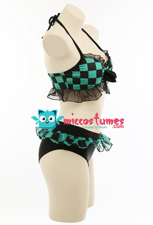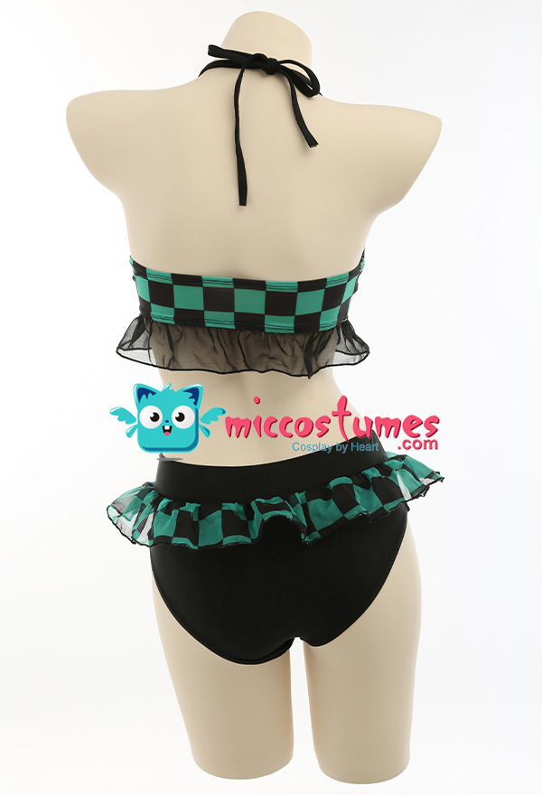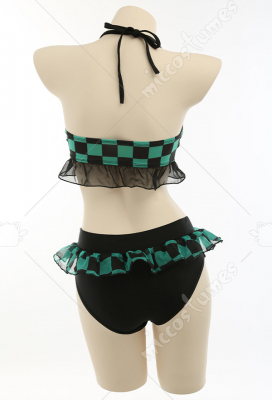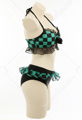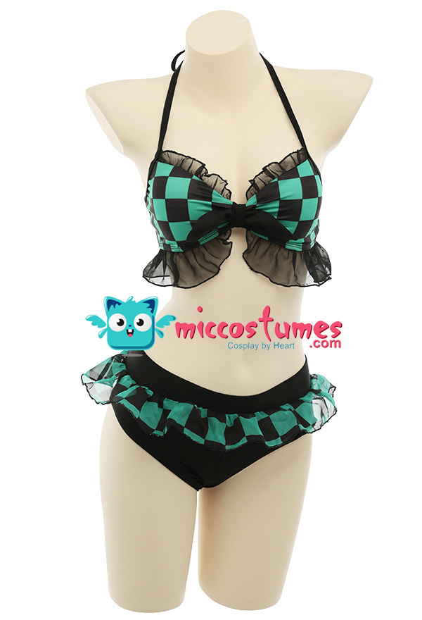 Cosume Includes: top, shorts. Material: chiffon. Design Details: The chiffon ruffles endow the whole outfit with agility and cuteness. The grid pattern restores Tanjiro’s outfit in the anime, and with the decoration of a bow, it looks very cute. The halter design provides convenience for adjustment. Attention: The swimming suits belong to underwear, so please wear shorts when you try on, otherwise the swimming suits can’t be returned or exchanged if the question appears. All the swimming suits are with Protective Hygienic/Hygienic Panty Swimwear Liner, and the swimming suits can’t be returned or exchanged if ripped the liner. Wash Care Instructions: Not machine washable Do not iron Do not bleach Hang to dry No dry cleaning No dryer Washing precautions: 1.The swimsuit can only be washed in warm water, not soaked and washed in high temperature water. 2. Do not use detergent, soap, disinfectant, or other chemical cleaners to wash swimsuits. 3. There may be chemicals or seawater in the pool which could cause the swimsuit to fade or deform. Please wash your swimsuit immediately after use and dry it in a cool place. Please do not expose the swimsuit to the sun to dry. 4. When the swimsuit is wet, it is very easy to dye it with other clothes. Please wash different color swimsuits separately. Advice: 1. Please keep away from objects with rough surfaces such as stones. 2. Chemical agents and sunscreen products reduce the elasticity of swimsuits. Please apply sunscreen after putting on your swimsuit. Please take a shower after exercise before wearing a swimsuit. 3. Please do not put your swimsuit in a closed bag or in the trunk of a car. High temperatures can easily discolor swimsuits. Please wash the swimsuit with clean water as soon as possible after using the swimsuit.