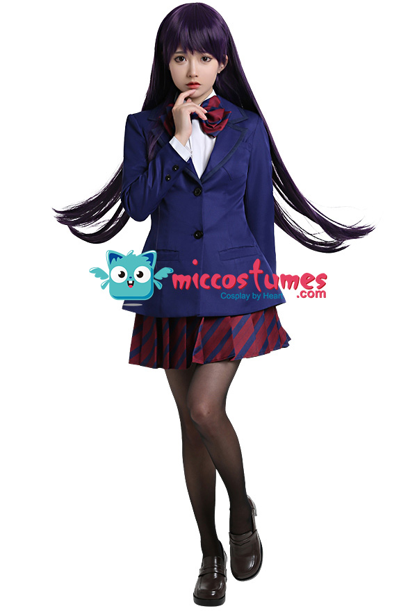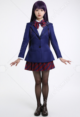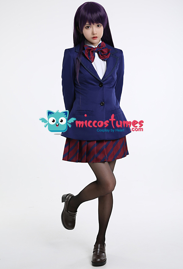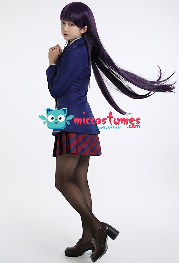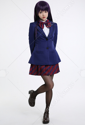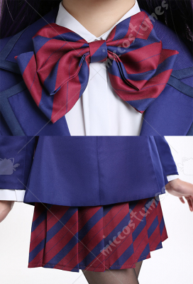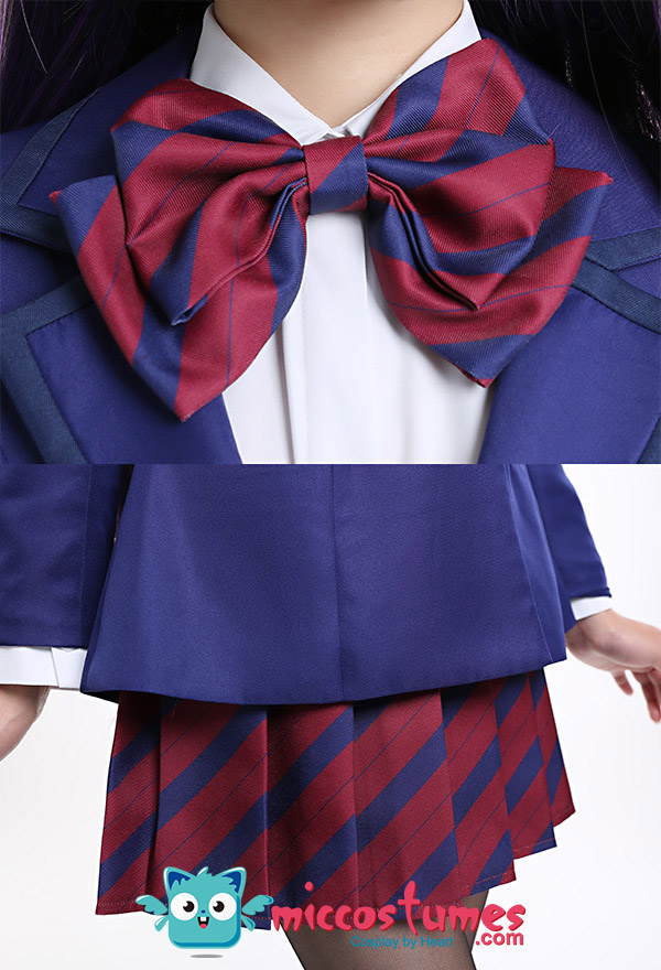 Design Details: This costume is made of uniform cloth. Skirt and bow tie are digitally printed into plaid pattern on this uniform. The jacket has padded shoulders to make it look wider.
