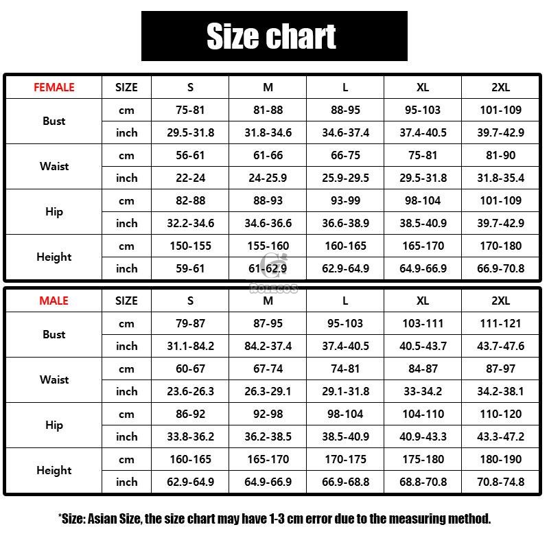 Included Items:Jacket, T-shirt, belt*2, pants, chain, hat