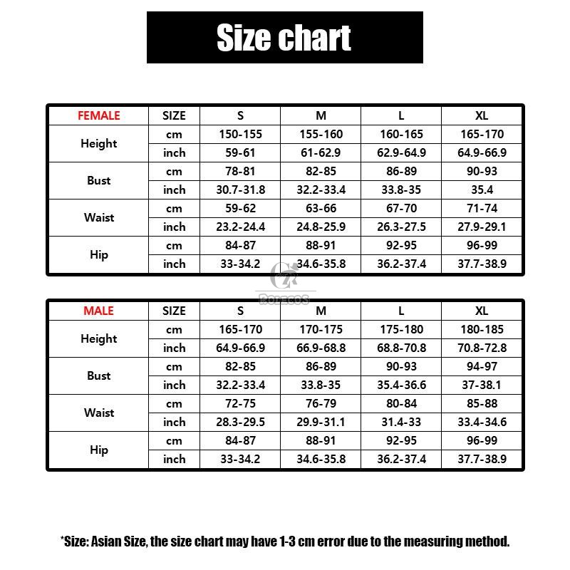 Included Items:Jacket, T-shirt, belt*2, pants, chain, hat