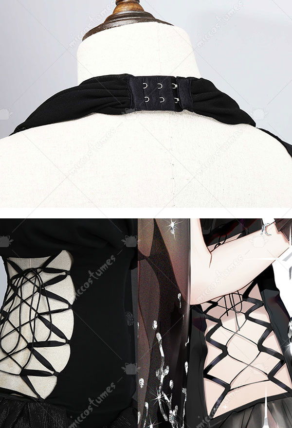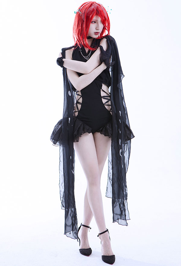 The costume includes cape*2, dress, gloves*1, headwear. It is made of chiffon and gauze.