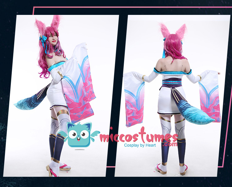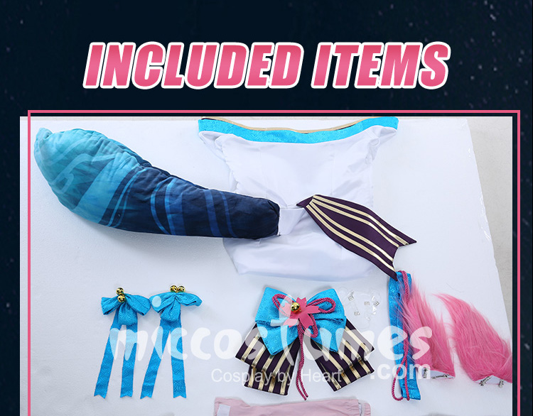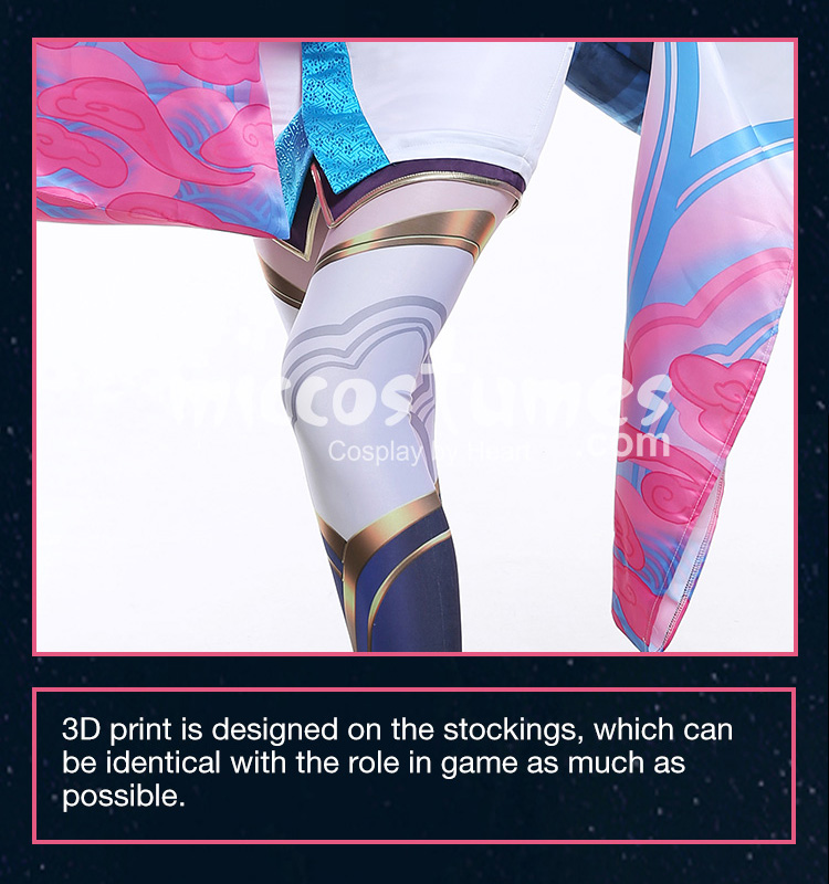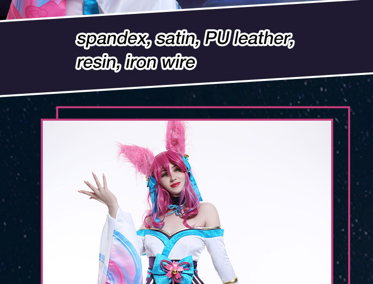 Costume Includes: Dress * 1, Girdle * 1, Pants * 1, Ear * 2, Neck Accesory * 1, Bow * 1, Head Accessory * 2, Belt * 1. Material: spandex, satin, PU leather, resin, iron wire. Design Details: The stocking is decorated with digital print, which is dimensional from vision. and the print is designed according to the role and her poster image. Attention: Due to color difference, the cloth shows different from each page.