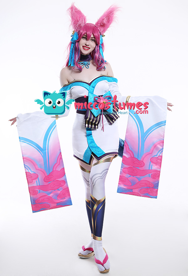 Costume Includes: Dress * 1, Girdle * 1, Pants * 1, Ear * 2, Neck Accesory * 1, Bow * 1, Head Accessory * 2, Belt * 1. Material: spandex, satin, PU leather, resin, iron wire. Design Details: The stocking is decorated with digital print, which is dimensional from vision. and the print is designed according to the role and her poster image. Attention: Due to color difference, the cloth shows different from each page.