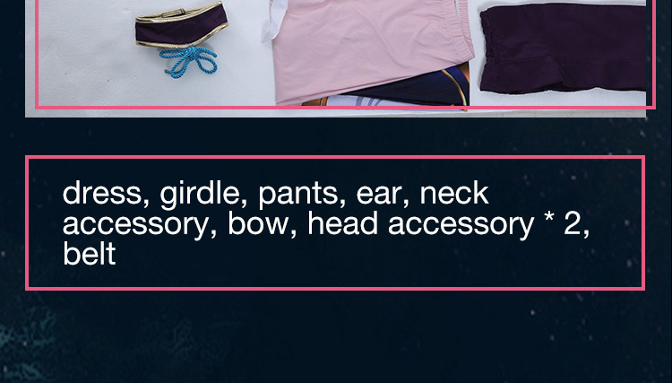 | Included Items | dress, girdle, pants, ear, neck accessory, bow, head accessory * 2, belt |
