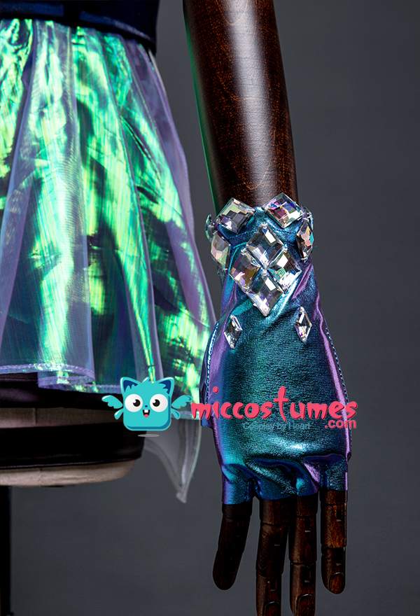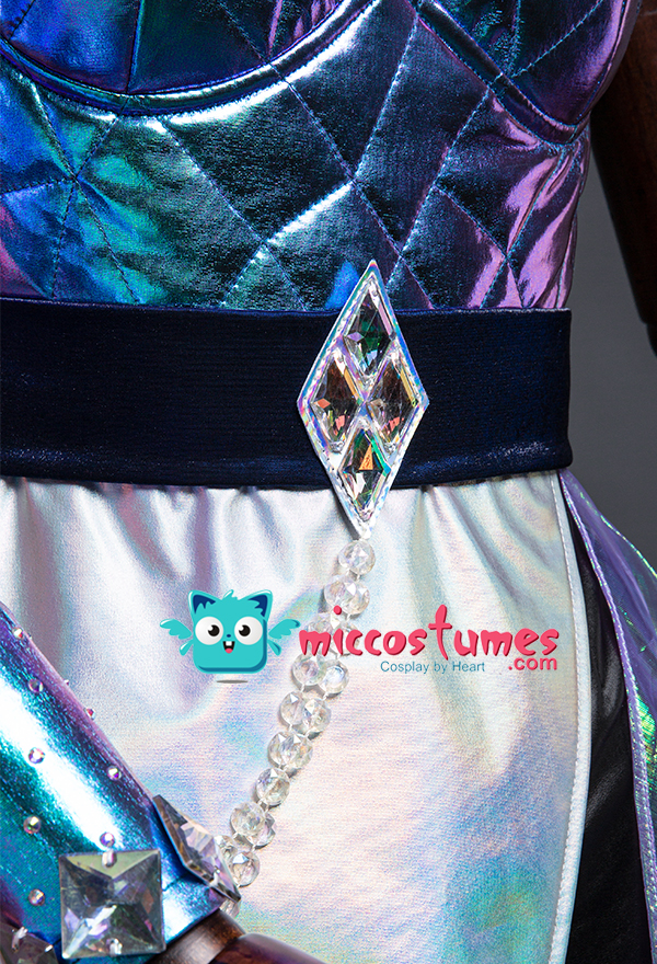Costume Includes: short jumpsuit, belt, glove, neck accessory, head accessories*2. Material: spandex, PU leather, sequins net yarn, cotton, shiny yarn. Design Details: The costume adopts laser shiny leather for making shoulder accessory, and the unique shoulder pads makes the shoulder curve more dimensional. The sleeve part is of hot drilling craft. The costume is knitted by hand, which enables the full set more dimensional. The accessories on both wrist and waist part are both hand-sewn acrylic drill. Please Notice: The synthetic diamonds on the V collar are adhered by glue, therefore, the collar touches a bit rigid. The diamonds and sequins on the chest part may fall off from the costume due to long-time transportation, which is unavoidable. Both are not quality problems. So, we do not provide refund or replacement for the two issues.
