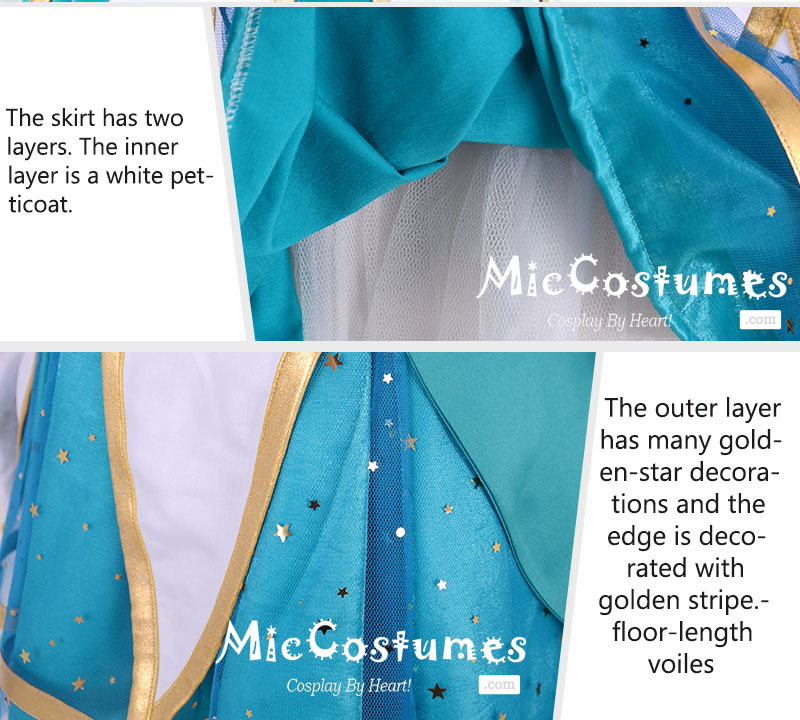 The ears, the shoe accessories, the wings, and the magic staff are not included. Please understand that some parts of the accessories are different from the images. There may be some minor alterations. Please refer to your own bust to choose the right size. When wearing the blouse, it is kindly recommended to use invisible straps. The shoe covers need to be fixed with pins. The hand-made star accessories may fade because of the temperature.
