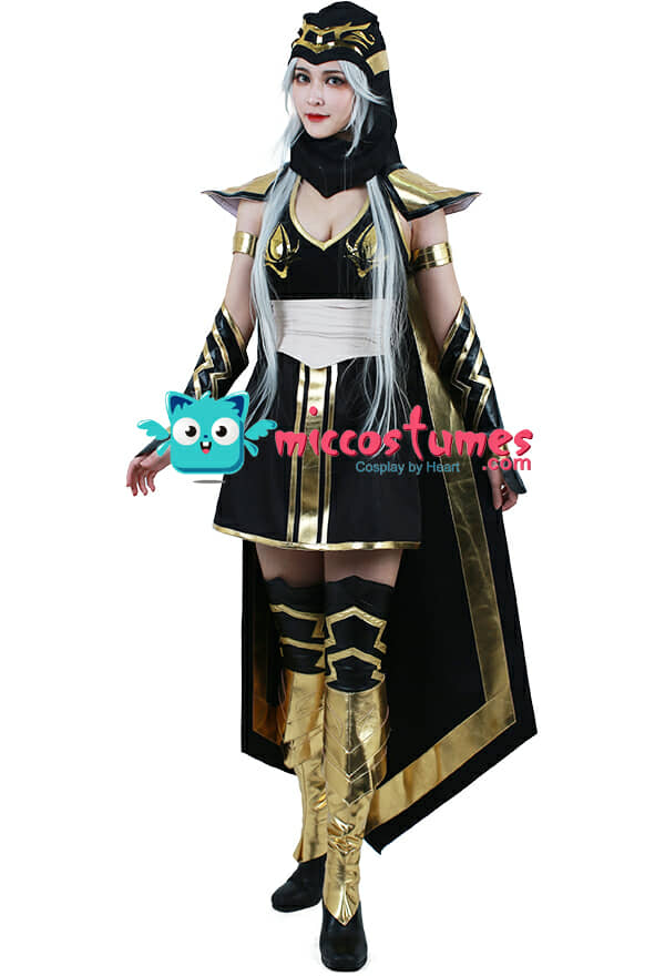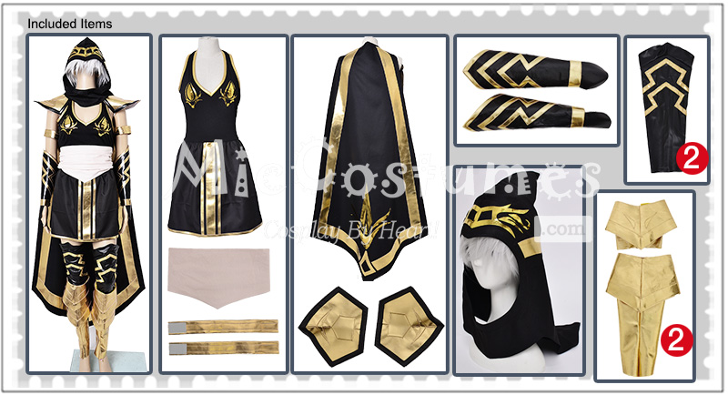 | Included Items | Hood, cape, shoulder pads, dress, waistband, armbands, arm guards, leg warmers, leg guards |